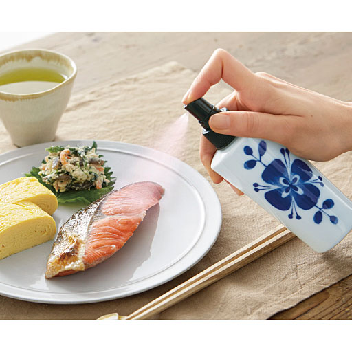食材にシュッと吹きかけるだけの醤油差し。少量で均等にかけられるので減塩になり、使い残しが少なく経済的です。